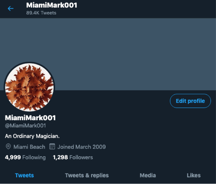 Figure 1: Screen shot of my Twitter profile page taken Monday, June 8, 2020.