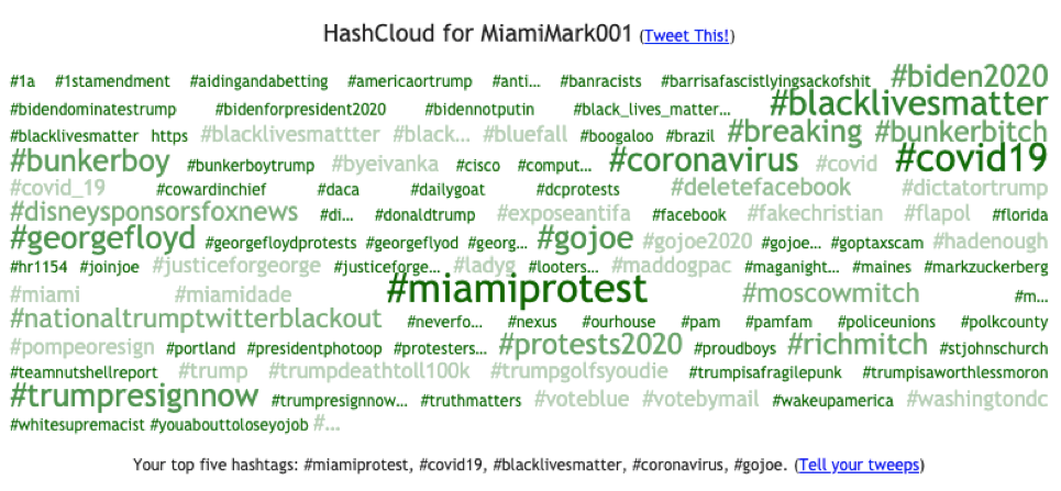 Figure 3: Screen shot of Hash Cloud taken June 7, 2020.