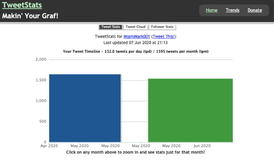 Figure 4: Screen of my Twitter usage over two months, as reported by TweetStats on June 7, 2020.
