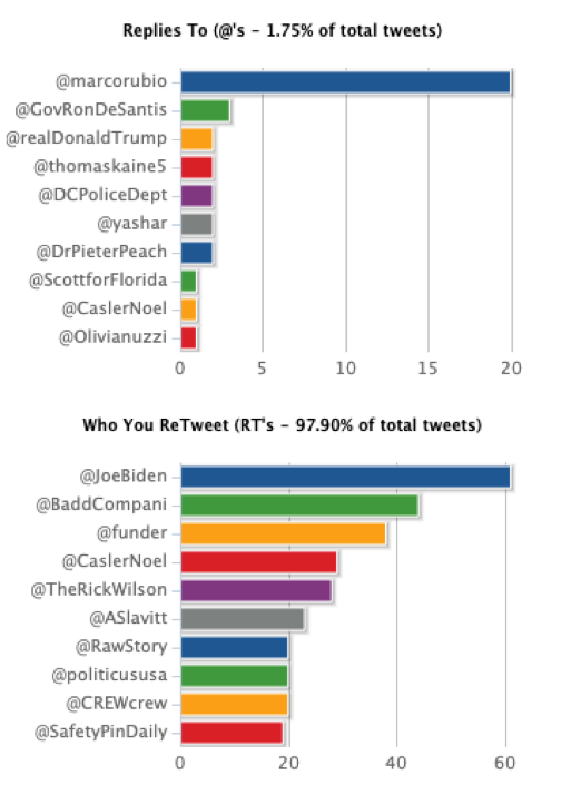 Figure 6: Screen shot of most frequent targets of Tweets, taken June 7, 2020.